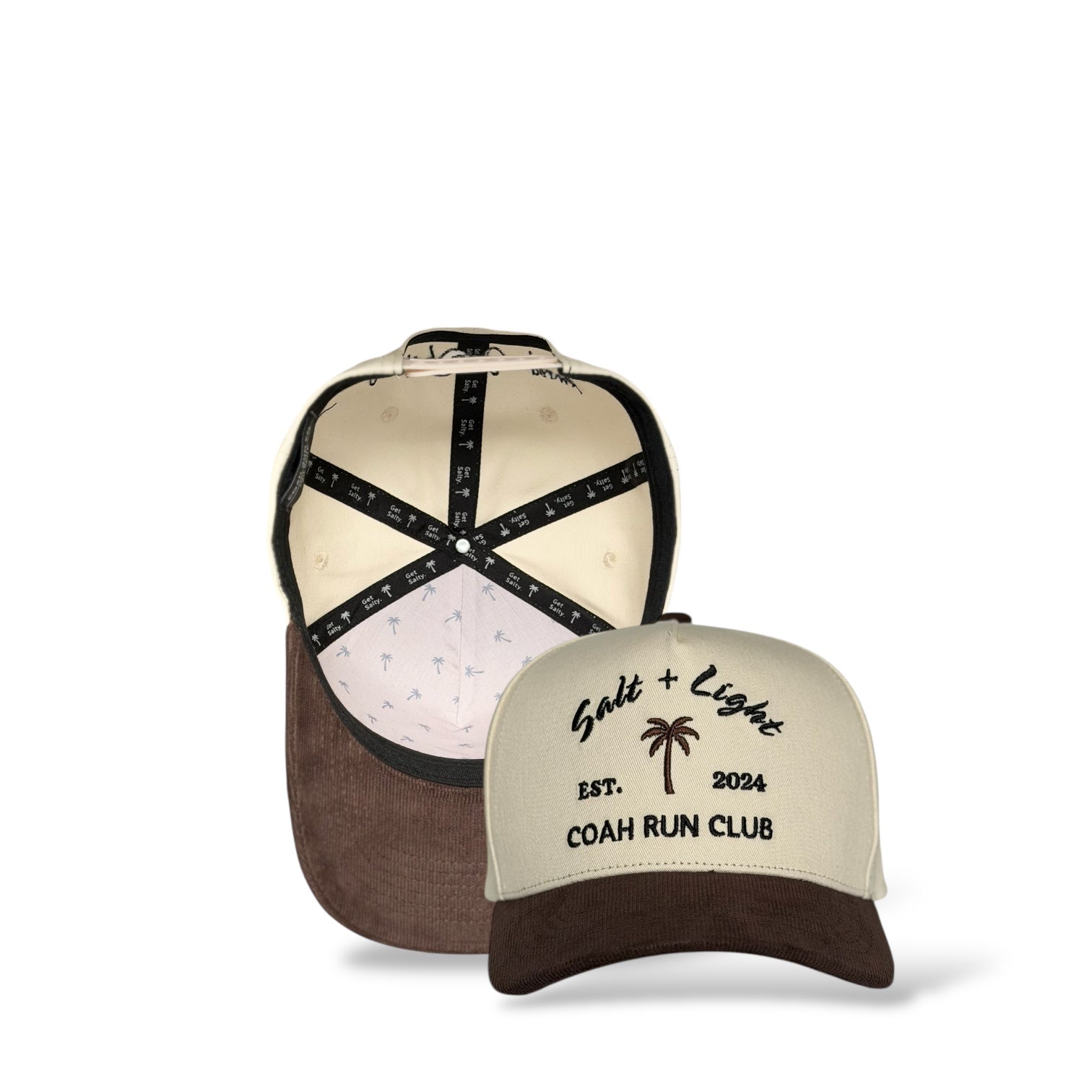 Designed with an old school but modern twist with a brown corduroy bill. Clean, Coastal and effortlessly contemporary, this hat is made for everyone!